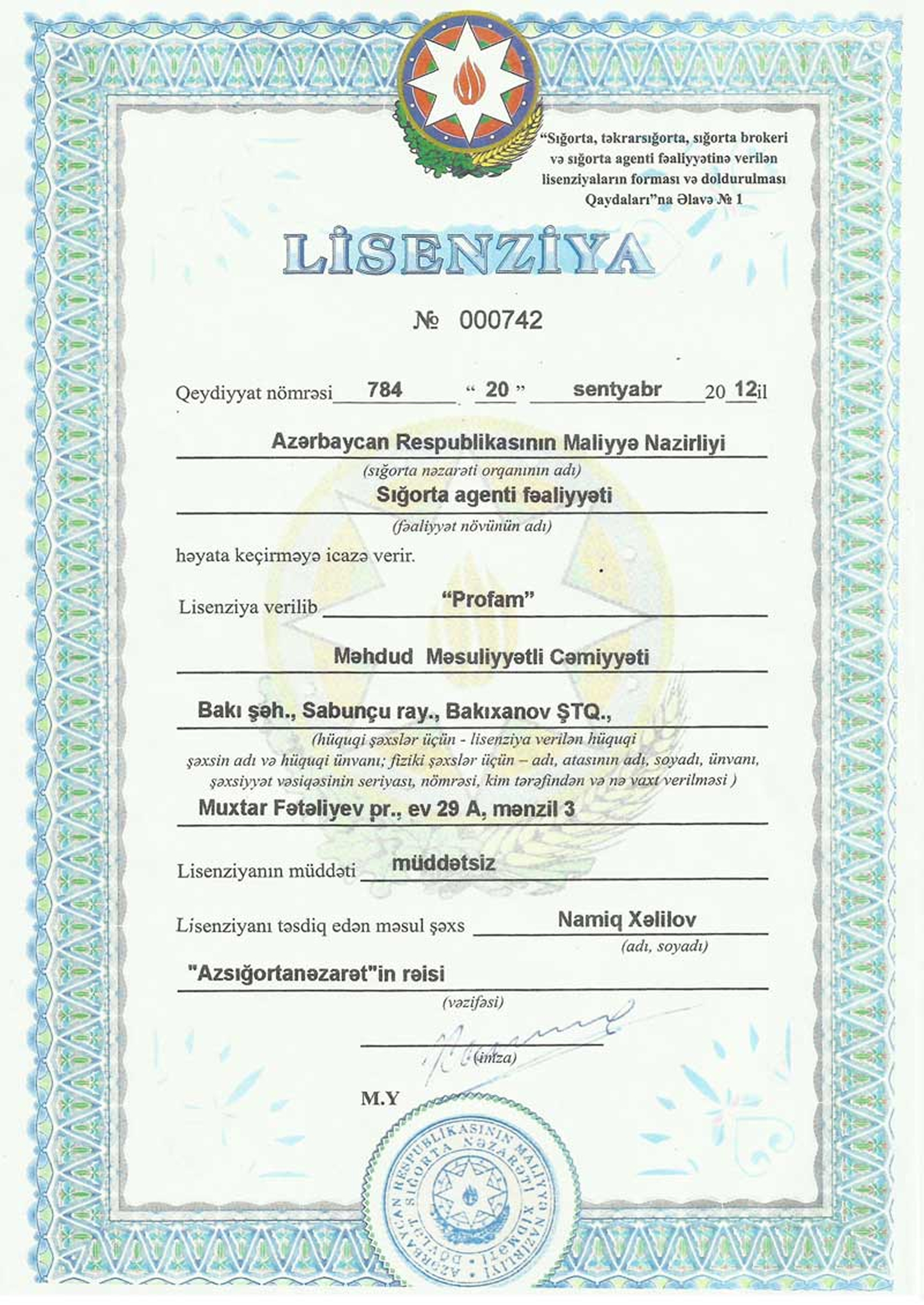 20.09.2012 года компания получила лицензию страхового агента!